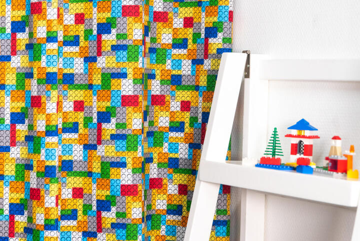 Een Lego gordijn voor je raam! Als jij je eigen Lego gordijnen kiest wordt het helemaal jouw kamer. Deze gordijnstof met de naam Building Bricks is gemaakt van katoen waardoor het gordijn mooi in de plooi valt. Het aantal te gebruiken banen gordijnstof van 140cmbreed worden door ons vakkundig aan elkaar geconfectioneerd zodat het lego patroon van 32cm mooi doorloopt. Laat voor een aangename verduistering van de kamer de gordijnen voeren: een verschil van dag en nacht.