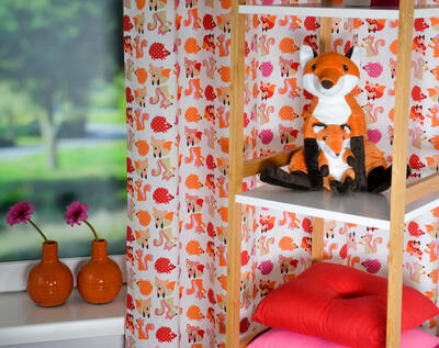 Schattige bosdiertjes kleuren dit gordijn. Speels om & om gedrukt, want ‘mixed up’ is juist extra leuk! Rodent betekent in het Engels knaagdier, maar ook vosje en egel (allen zo’n 5 cm groot) doen gezellig in de voorstelling mee. De print is op de voorzijde van de matte, fijn geweven katoen gedrukt. De ondergrond is bij alle 3 de kleurpaletten warm-wol-wit. Voor de jongens en meisjes slaapkamer perfect te combineren met één wandje geruit- of stippenbehang. Voor verduistering kan je dit gordijn extra laten voeren. Val jij voor al deze vrolijke kraaloogjes?