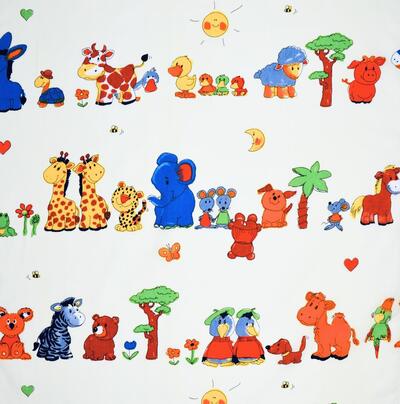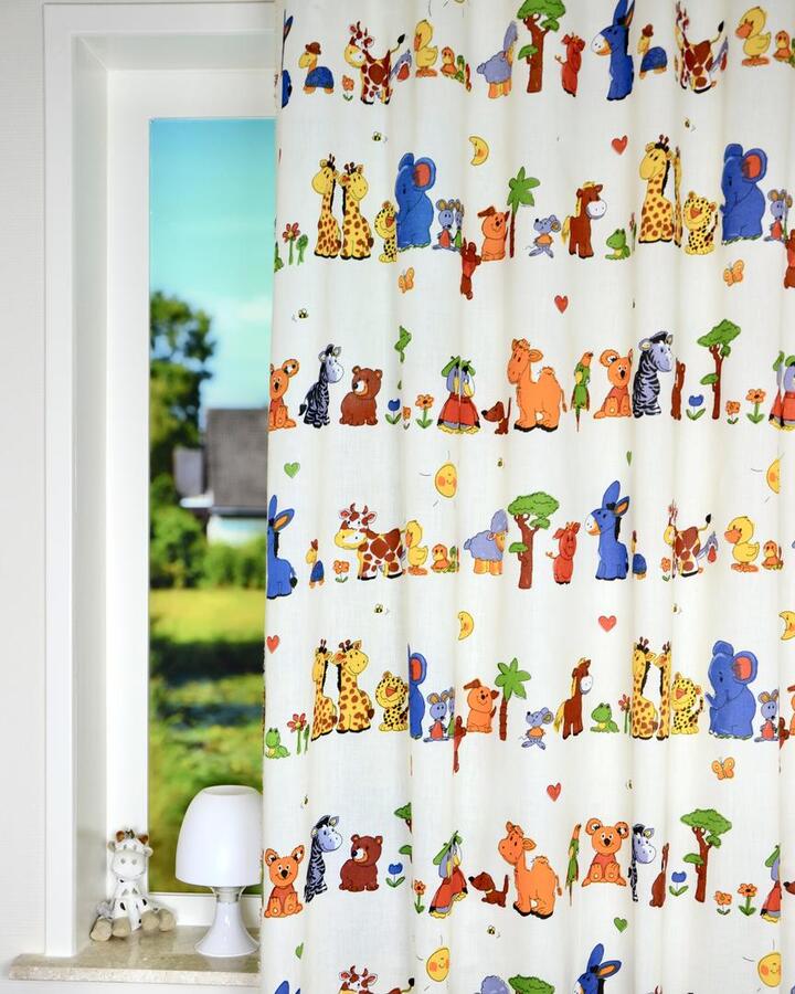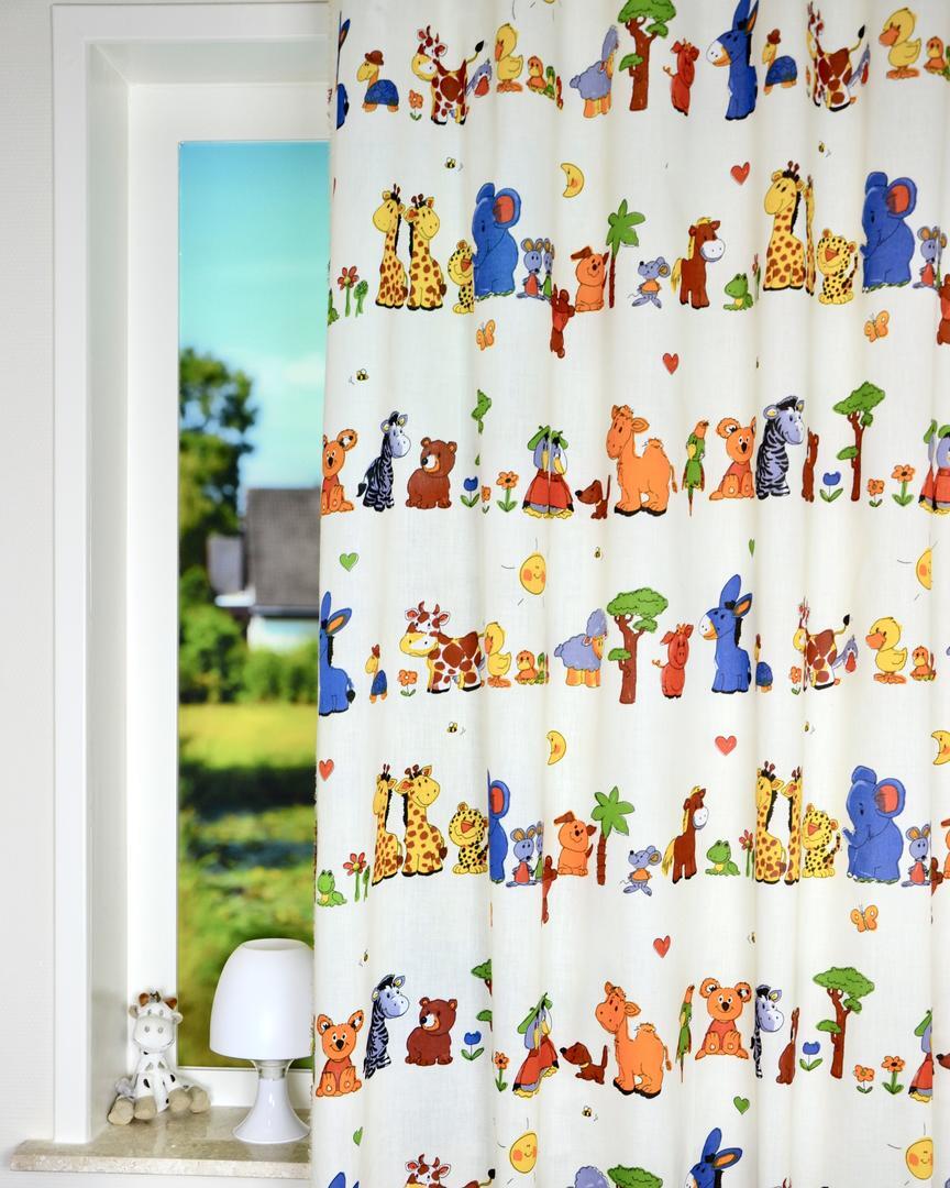 Deze gordijnen zijn té gek! Zo veel te zien én zo leuk getekend! Wie wil er nu niet zo'n vrolijk gordijn op zijn kamer? De dieren spelen met elkaar op de fluweelzachte stof. De afbeeldingen zijn royaal & in horizontale banen gedrukt, waardoor het geheel rustig blijft. Daardoor zeker geschikt voor grotere raampartijen. Het olifantje is ± 19 cm groot. Het gordijn valt perfect in de plooi door de soepele stof, die desgewenst verduisterend gevoerd kan worden. Kies jij voor dit dieren feestje in je kamer?