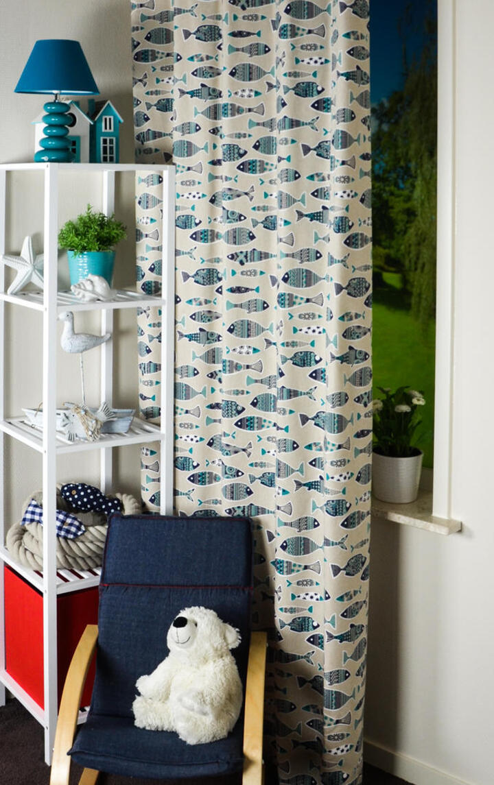 Mooie en unieke gordijnstoffen perfect op patroon geconfectioneerd, dat is wat we belangrijk vinden. Dat geldt zeker ook voor deze gordijnstof met de naam Artful Fish, een unieke gordijnstof met een waterdieren dessin. De stof is gemaakt van de beste materialen waardoor het gordijn mooi in de plooi valt. Het aantal te gebruiken banen gordijnstof van 140 cm breed wordt door ons vakkundig aan elkaar geconfectioneerd zodat het waterdieren patroon van 32 cm mooi doorloopt. Laat voor een aangename isolatie en extra verduistering de gordijnen voeren: een verschil van dag en nacht!