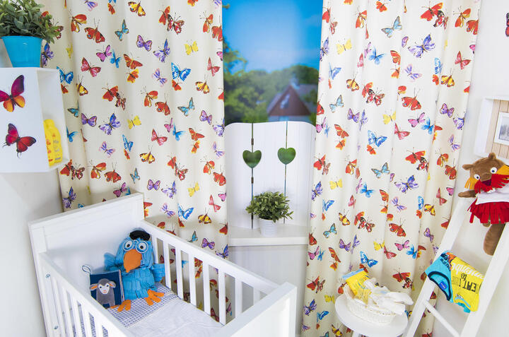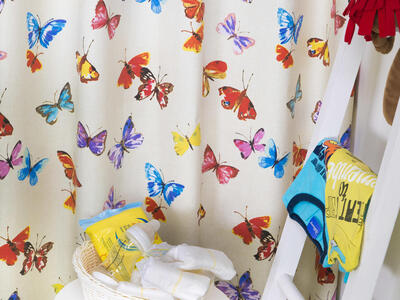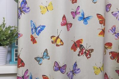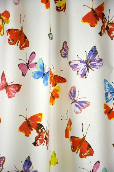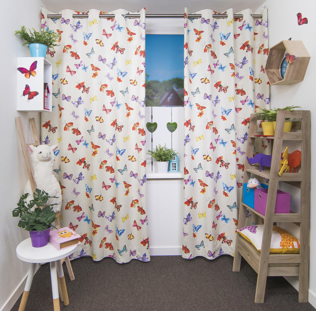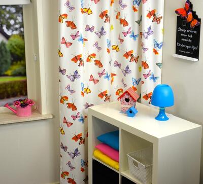 Met deze schitterende felgekleurde vlinders in de kinderkamer worden uw (klein)kinderen iedere dag vrolijk wakker! Voor het mooiste effect adviseren wij u om deze stof te laten voeren tot een verduisterend gordijn