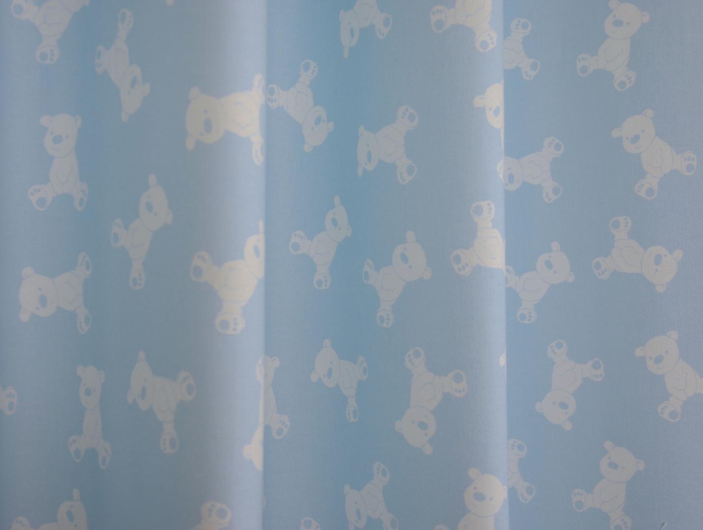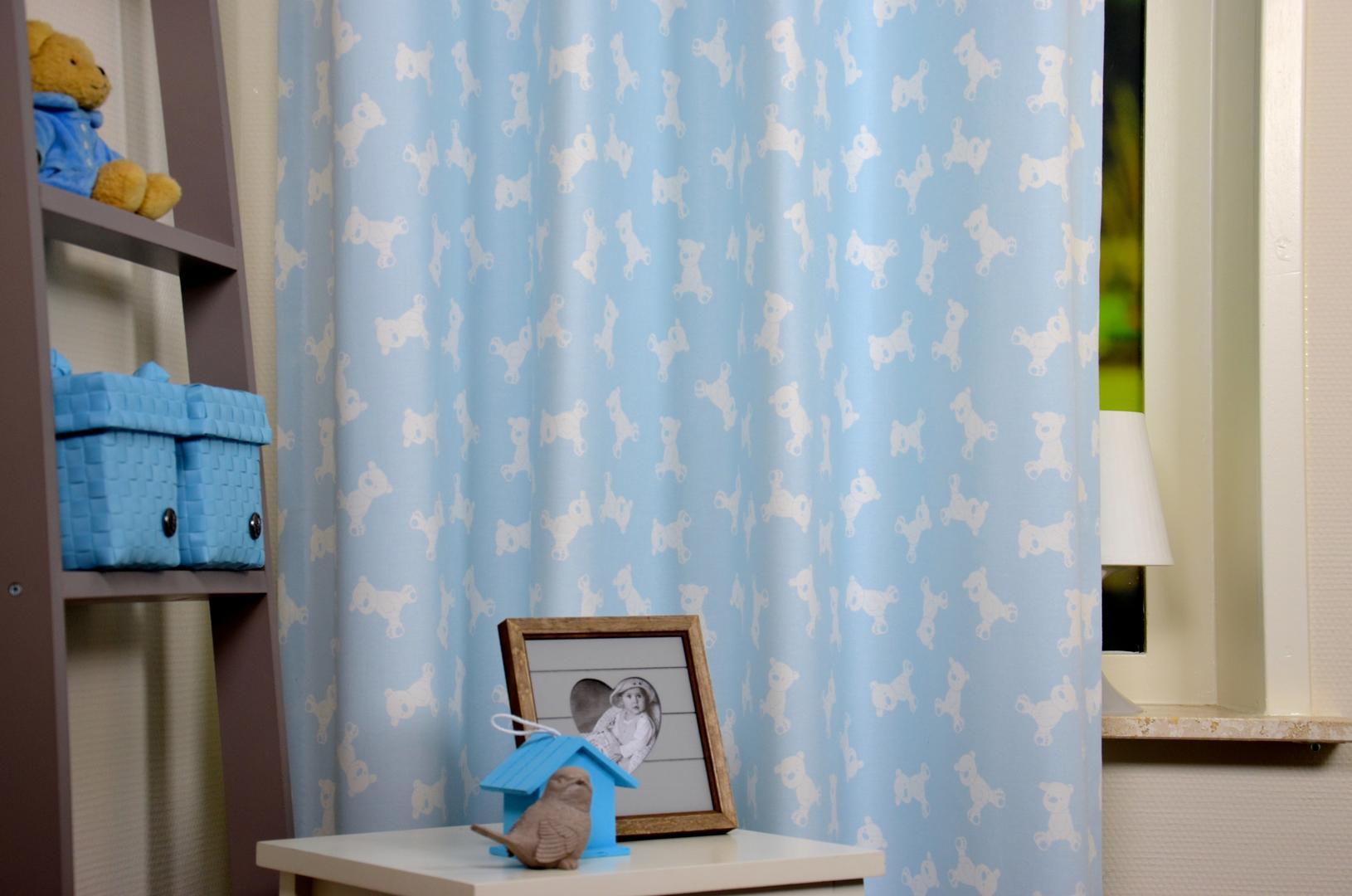 Vrolijk kijk ik de wereld in! Ja ook jij kleine beer! Dit gordijn is schattig voor de kleine van jou, door de kleine, tuimelende troetelbeer. Het 6 cm grote teddy beertje kijkt helder en eigenwijs de slaapkamer in. Door de herhaling van vorm, blijft het gordijn rustig en toch speels. De stof is leverbaar in 3 verschillende kleuren en kamerhoog, waardoor het gordijn zonder naden stijlvol tot de grond gemaakt kan worden. Voor verduistering desgewenst voeren.