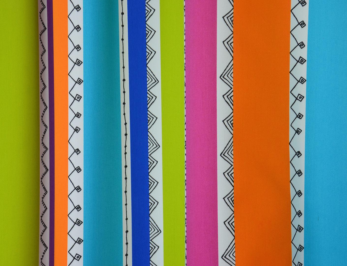 Dat geldt zeker ook voor deze gordijnstof met de naam Aztec Stripe, een unieke gordijnstof met een strepen dessin.