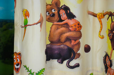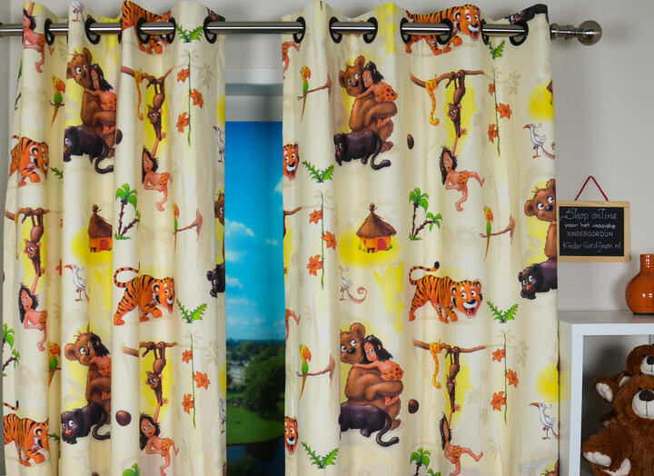 Dat geldt zeker ook voor deze gordijnstof met de naam Mowgli, een unieke gordijnstof met een dessin.