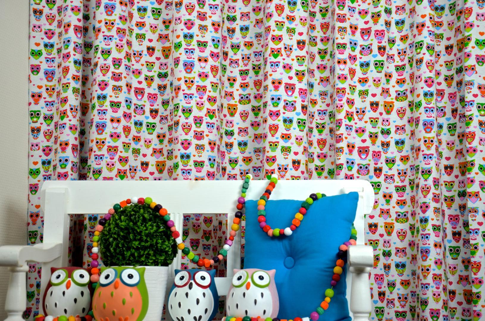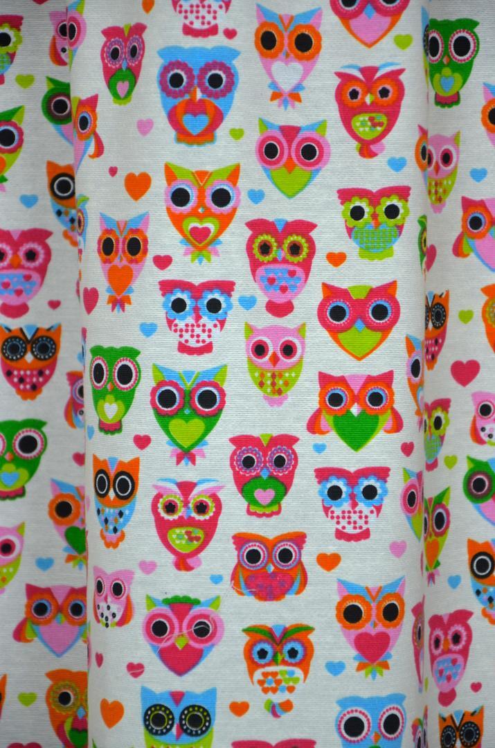 Dat geldt zeker ook voor deze gordijnstof met de naam Owls & Hearts, een unieke gordijnstof met een dessin.