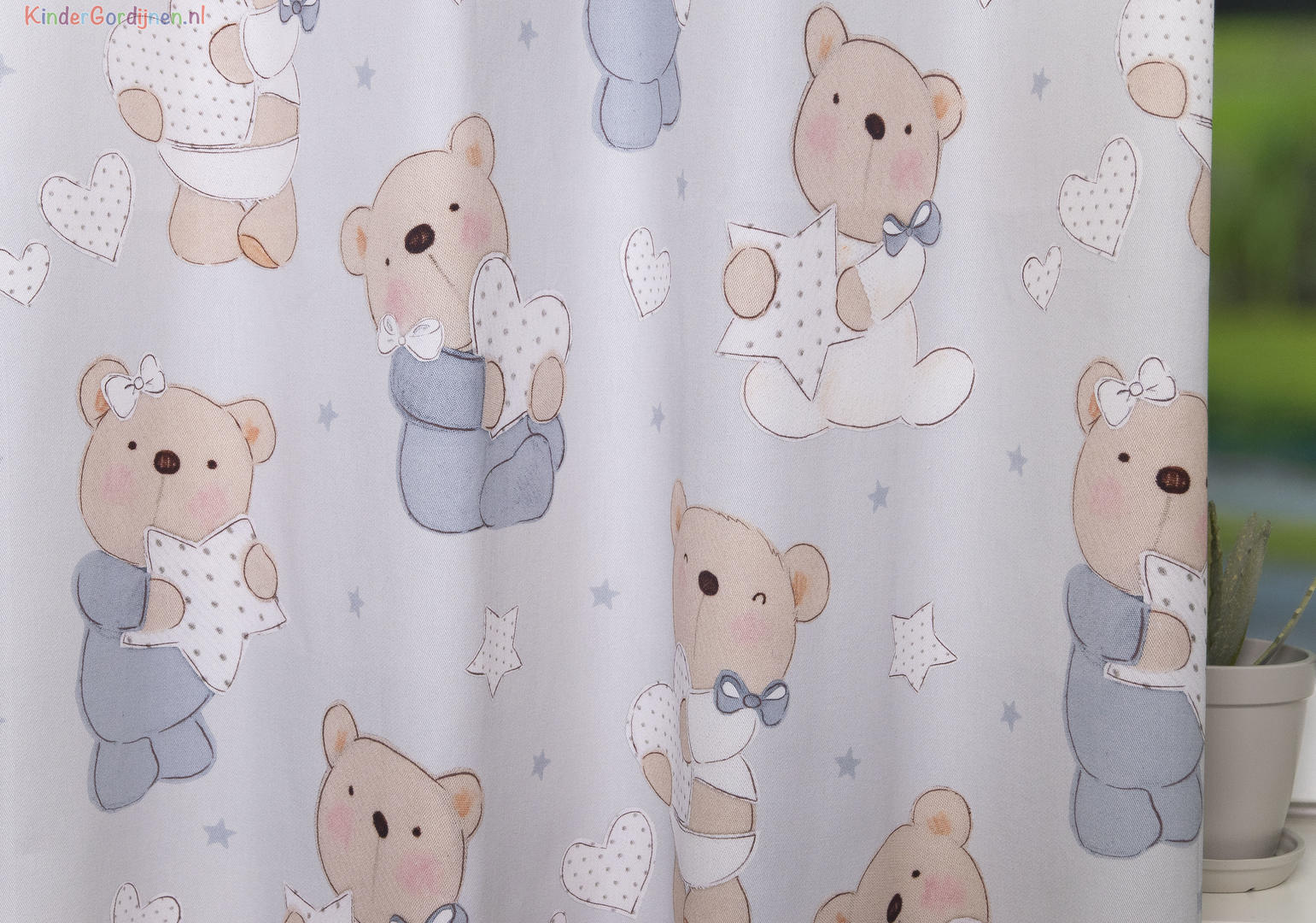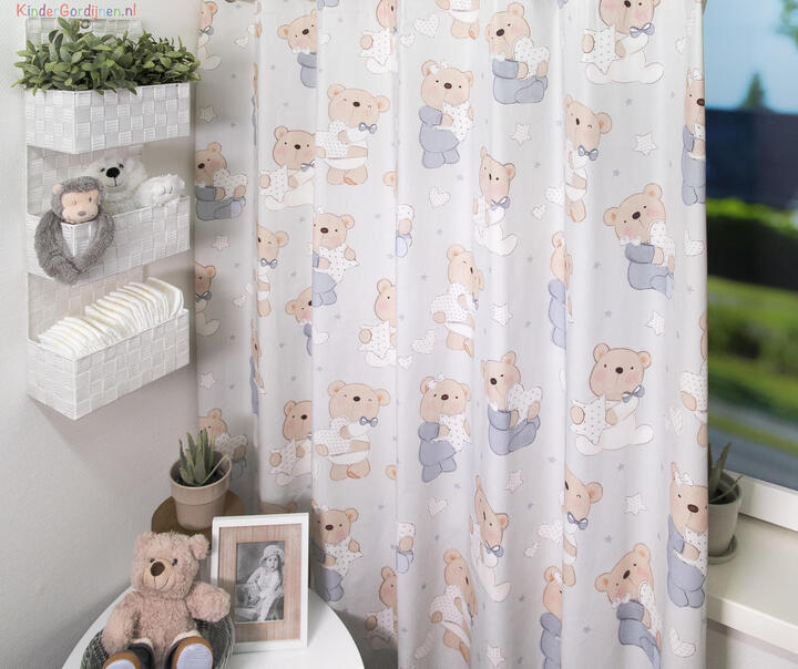 Wat een schitterende kwaliteit gordijnstof! Zien is geloven, zo mooi soepel geweven én maar liefst 280 cm breed! Dat betekent dat het babykamer gordijn meestal naadloos kan worden gemaakt. De schattige beren print is gedrukt op een heel fijn geribde stof, wat een vlotte sportieve uitstraling geeft. De teddybeertjes zijn op de voorzijde gedrukt, maar liefst 22 cm groot en leverbaar in 3 verschillende ondergrond kleuren. Eigentijds vergrijsd blauw voor de jongenskamer, pastel roze voor meisjes slaapkamer en warm zachtgrijs voor als je liever geheim wilt houden welk lief kleintje er komt slapen. Door de royale print kun je het gordijn uitstekend tot de grond laten confectioneren. Wanneer je extra verduistering wenst, graag optie voeren aanvinken in het bestelproces. Kortom, deze fraaie stofserie is een aanwinst binnen onze enorme collectie! ~Have a happy teddybear day~