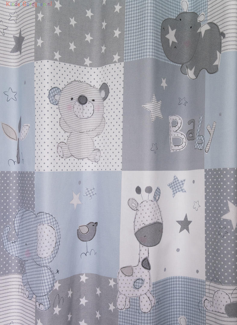 Wat een schitterende kwaliteit gordijnstof! Zien is geloven, zo mooi soepel geweven én maar liefst 280 cm breed! Dat betekent dat het babykamer gordijn meestal naadloos kan worden gemaakt. De schattige dierenprint is gedrukt op een heel fijn geribde stof, wat een vlotte sportieve uitstraling geeft. De baby dierentuin diertjes zijn op de voorzijde gedrukt, in vlakken van 20 x 20 cm groot en leverbaar in 2 verschillende kleurcombinaties. Eigentijds zacht blauw met fris grijs voor de jongenskamer en pastel roze met vergrijsd camel voor meisjeskamer. Door de royale print kun je het gordijn uitstekend tot de grond laten confectioneren. Wanneer je extra verduistering wenst, graag optie voeren aanvinken in het bestelproces. Kortom, deze fraaie stofserie is een aanwinst binnen onze enorme collectie.