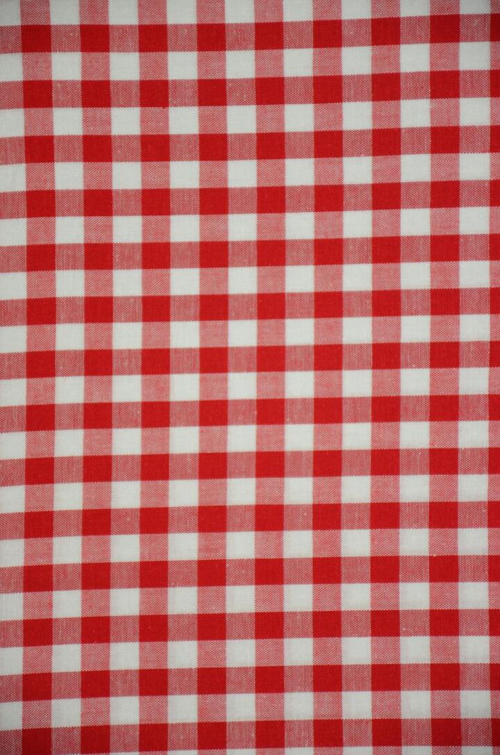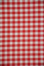 Dit overgordijn met neutraal ruitmotief is leverbaar in veertien verschillende kleuren. De ruit is ongeveer 1,5 centimeter.