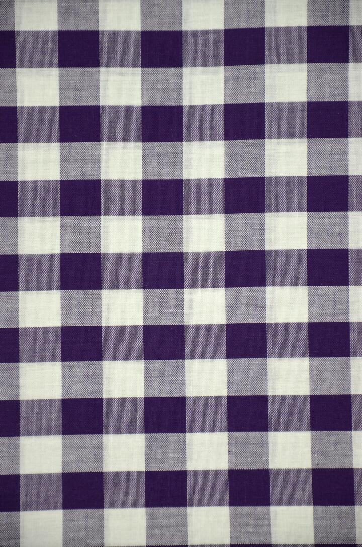 Dit overgordijn met neutraal ruitmotief is leverbaar in veertien verschillende kleuren. De ruit is ongeveer 2 cm..