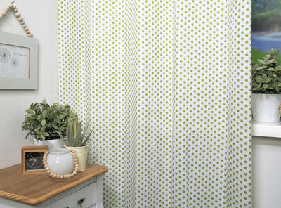 Uniek door z'n eenvoud, Dit gordijn met witte stippen is beschikbaar in verschillende vrolijke kleuren. Het materiaal van dit gordijn is katoen en is lekker soepel in omgang. ? Het kindergordijn is in heel veel verschillende uitvoeringen verkrijgbaar denk hierbij aan: roze stippen, blauwe, groene, gele, zwarte stippen en ga zo maar door. In totaal zijn er 12 variaties aan stippen op wit. ?