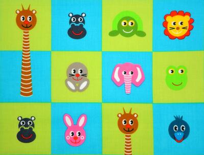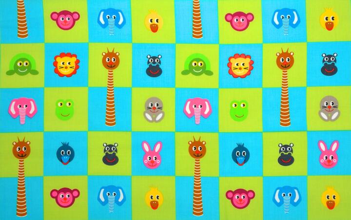 Wat een vrolijke dieren kijken naar jou! Het lijkt bijna alsof zij willen zeggen: “Welkom op je slaapkamer.” De beestjes zijn gedrukt in de vierkanten van 6 x 6 cm. De turquoise kleur kan zowel voor de meisjes- als jongenskamer. Ook leverbaar in drie andere vrolijke kleuren, allemaal even sprankelend en lief. Ook leverbaar als vouwgordijn.