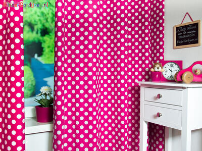 STIPPEN zijn HIP! Dit gordijn is zelfs hip én tijdloos omdat een stip zich met vele andere dessins laat combineren. Denk aan romantische elfjes, prinsessen of bloemen. Je kunt dus heel leuk een accentwand in de slaapkamer behangen en af & toe eens wisselen. Aan de kleurkeuze van dit dessin zal het zeker ook niet liggen: maar liefst 18 soorten in voorraad! Daardoor is een snelle levering gegarandeerd. De ondergrond kleur en stip zijn aan de voorzijde gedrukt. Voor extra kleurbehoud of verduistering kan je het gordijn laten voeren. Dit kan je desgewenst aanvinken in het bestelproces. Ga jij voor de HIPPE STIP?