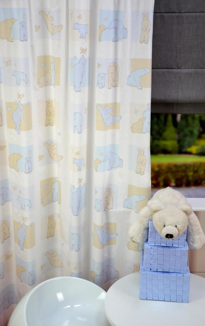 Dit katoenen gordijn met zachte kleuren past perfect in de babykamer. Met deze lieve beren voor het raam dommelt uw (klein)kind zo in slaap.