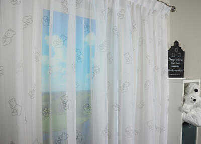 Heerlijk wegdommelen met deze rustgevende berenvitrages in de kinderkamer. Doordat het vitrages alleen zwarte en witte kleuren bevat, past het in vrijwel elke kinderkamer. Kindergordijnen.nl verwerkt de stof tot een kant-en-klaar product.
