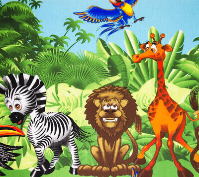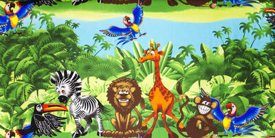 Welk kind wil dat niet? Slapen in het oerwoud; groen en dieren om je heen! Met dit gordijn kan dat eindelijk, want deze vrolijke beesten komen maar wat graag bij jou wonen. De jungle print is aan de voorzijde gedrukt op de glad geweven, matte stof. Het patroon is lekker royaal, waardoor je het gordijn fraai tot de grond kunt laten confectioneren. Wanneer je graag donker slaapt, kan je het gordijn extra voeren. Dit is tevens goed voor het kleurbehoud. Welkom in je toekomstige droom slaapkamer!