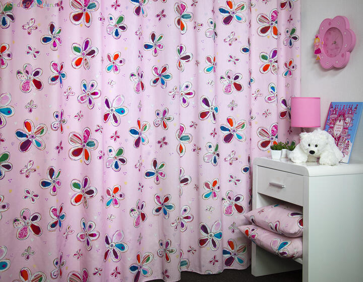 Een súper schattig bloemetjes voor de meisjeskamer, ontworpen door Hanneke de Jager. Deze beeldend kunstenares is schrijver en tevens illustrator van een aantal bijzonder leuke kinderboeken. Zij omschrijft haar stijl als: “Fris, kleurrijk, levendig, speels en zonnig.” Door gebruik van verschillende materialen zoals stofjes van de markt, knopen en gebreide truien, geeft zij haar illustraties iets unieks. In het patroon zie je namelijk de weergave van die leuke details van de verschillende texturen. Zo heeft de ondergrond een haast realistisch aaibaar brei-effect! Dat geeft direct een véél knusser effect bij harde materialen (b.v. laminaat/ gestucte wanden) Het stylen van de kinderkamer is geweldig leuk om te doen en hoe bijzonder is het om een gordijn van een échte ontwerpster te hebben! De stof is mat en soepel vallend en de print aan de voorzijde gedrukt. Als je goed kijkt zie je die kenmerkende ‘Hanneke’ details, een klein opgestikt knoopje, een zig-zag steekje en andere speciale “kantjes & randjes.” Zij tekent hele mooie prinsessen boeken en in die sfeer is dit gordijn ontworpen. Wil je ook nog lekker donker slapen, dan kan het kindergordijn verduisterend worden gevoerd. Kortom, wil jouw eigen hartendief op een bijzondere manier naar dromenland? Geef je eigen prinsesje dan een fantasierijk Hanneke de Jager kindergordijn!