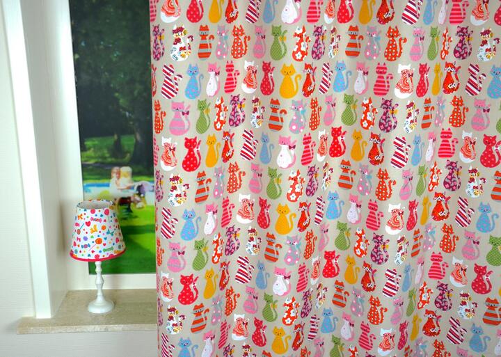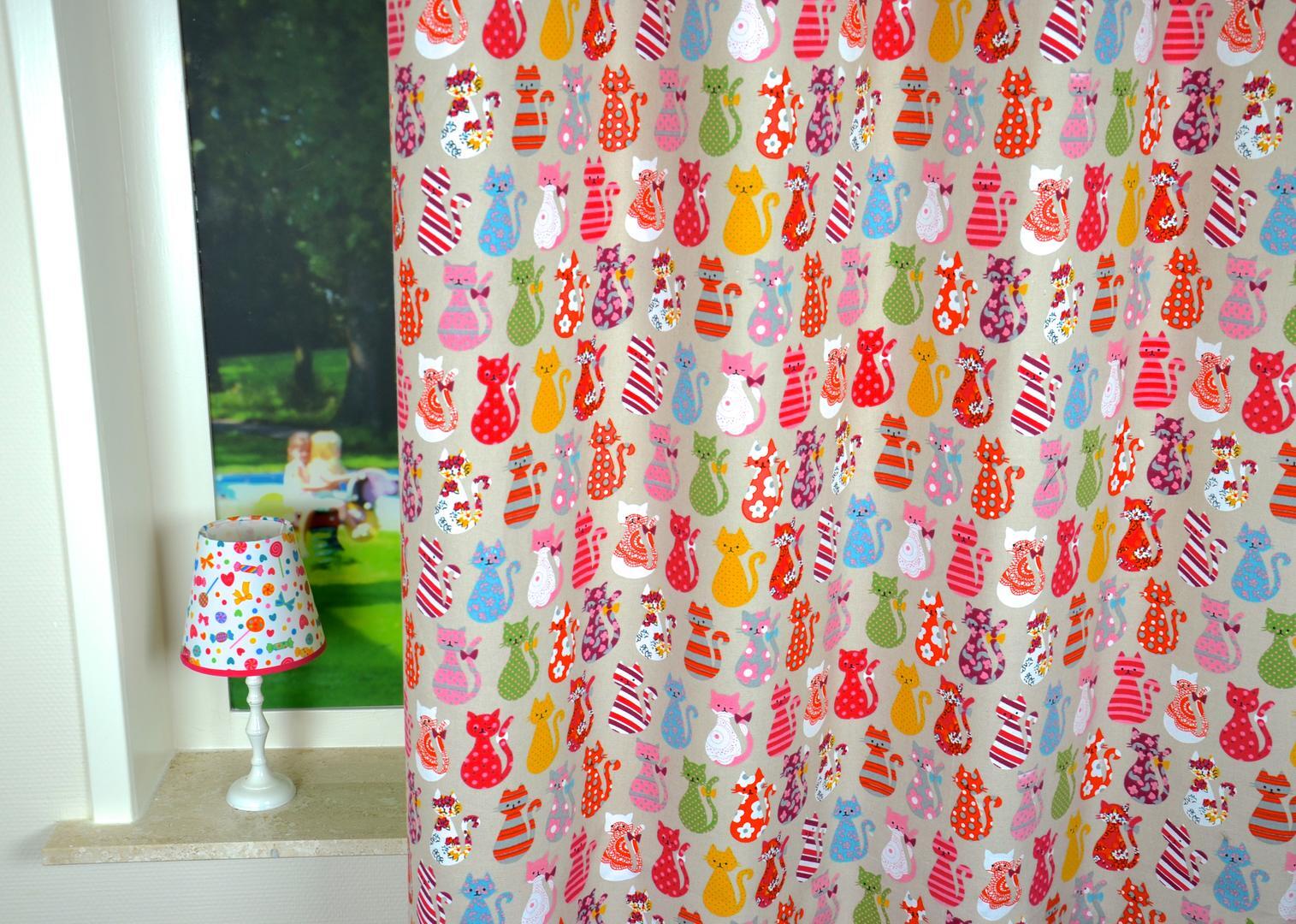 Lekker spelen met Calico de Cat! De kleurrijke kattenprint op dit vrolijke gordijn verandert de kinderkamer tot de lievelingsplek in huis.