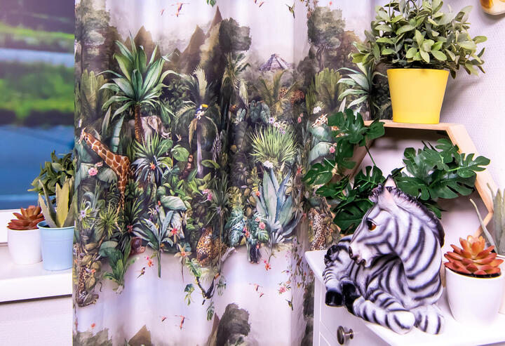 Dat geldt zeker ook voor deze gordijnstof met de naam Camboya, een unieke gordijnstof met een overige dieren dessin.