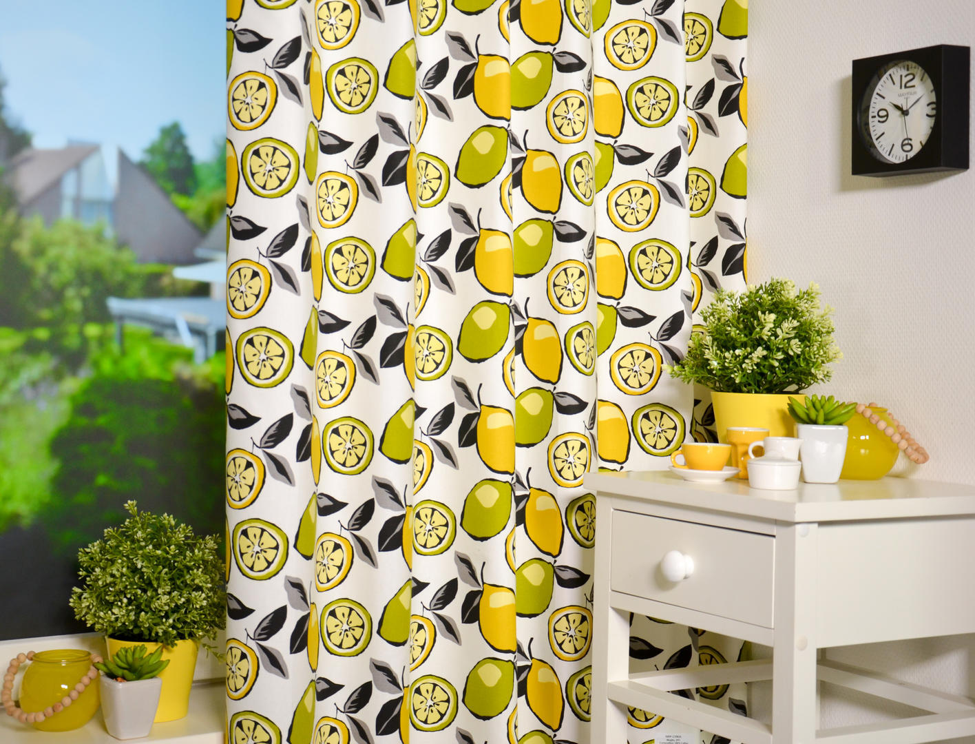 Dat geldt zeker ook voor deze gordijnstof met de naam Citrus, een unieke gordijnstof met een bloem en bladmotieven dessin.
