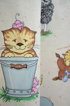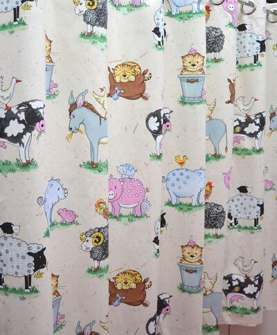 Vrolijke boerderijdieren nemen een kijkje in de kinderkamer op dit zachte katoenen overgordijn.