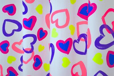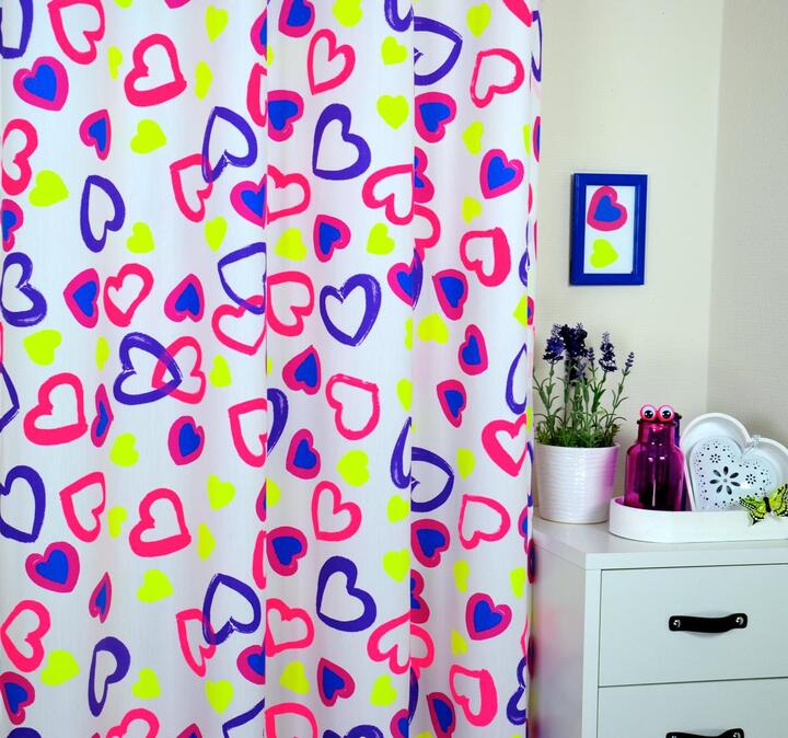 Tienermeiden willen een gave slaapkamer. Eén waar ze kunnen kletsen met vriendinnen, huiswerk maken en ook lekker kunnen slapen. De kamer mag beslist niet kinderachtig zijn, liever COOL en HIP. Deze gordijnen sluiten daar uitstekend bij aan. De opgedrukte hartjes variëren van 5 tot 10 cm en zijn lekker BLITS van kleur. Helemaal passend bij jouw wens! Voor het verduisterend effect even voeren.