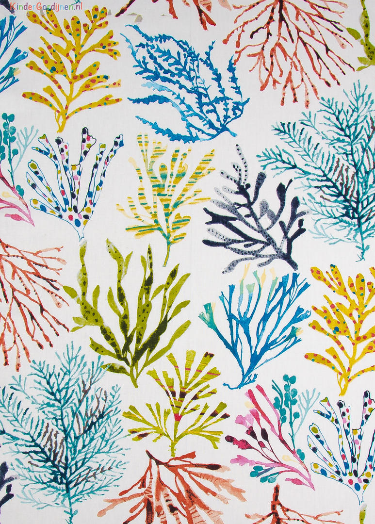 Dat geldt zeker ook voor deze gordijnstof met de naam Coral, een unieke gordijnstof met een waterdieren dessin.