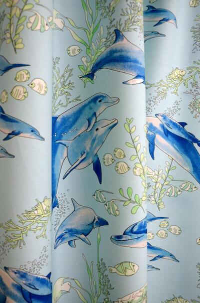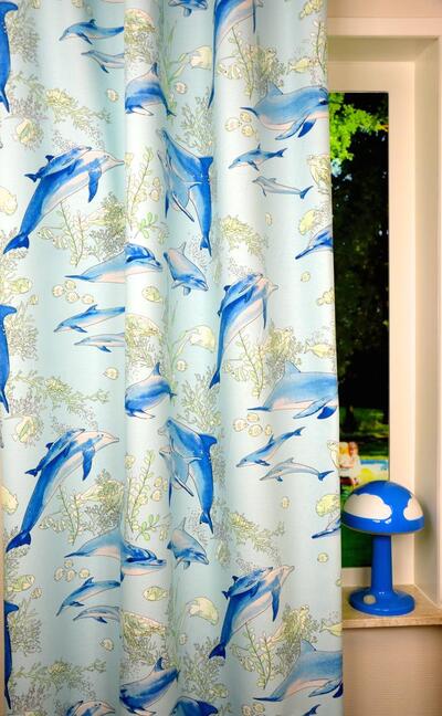 Dat geldt zeker ook voor deze gordijnstof met de naam Dolfijn, een unieke gordijnstof met een waterdieren dessin.