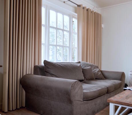 Bij een kamerhoge stof is er een maximale hoogtemaat, doordat de stofrol breedte de hoogte van het gordijn bepaald. Meestal is dit tussen de 260cm en 300cm hoog. De breedte van het gordijn is hierdoor wel onbeperkt en naadloos.