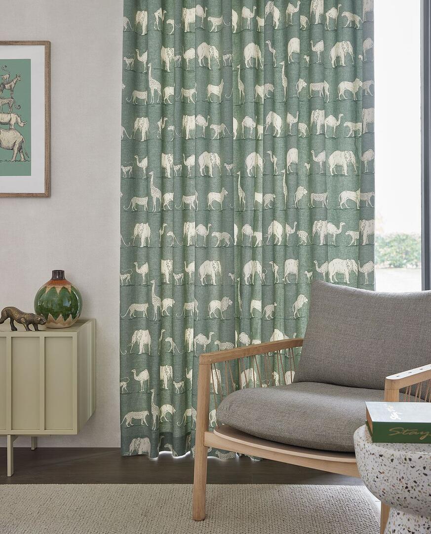 Vaak zijn stoffen voor kinderkamers zo specifiek kinderlijk en kleurrijk, dat je de gordijnen moet vernieuwen op het moment dat ze zich er te oud voor voelen. De Voltana van het mooie merk Eijffinger is een 100% katoenen drukstof die jonge, maar ook oudere kinderen zal aanspreken. De kleuren zijn rustig en haast vergrijsd en de print met Safari dieren is tijdloos. O ja, en ben je zelf fan van deze dieren, de stof hoeft natuurlijk niet in een kinderkamer te worden toegepast…