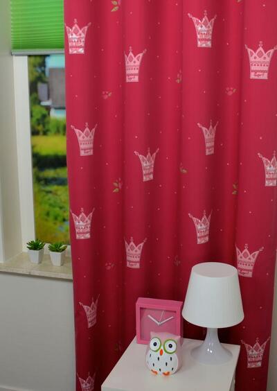 Mag het dieproze zijn lief prinsesje? Dé kleur voor romantische meisjes en in welk meisje schuilt nu geen prinses? Niet alleen deze fraaie kleur, maar ook de 11 cm hoge kroontjes geven een koninklijk effect. Deze stof van het merk ESPRIT is mat en glad geweven. Om het prinsessen thema compleet te maken kan je kussentjes van dezelfde stof bijbestellen. Naar wens ook verduisterend te voeren.