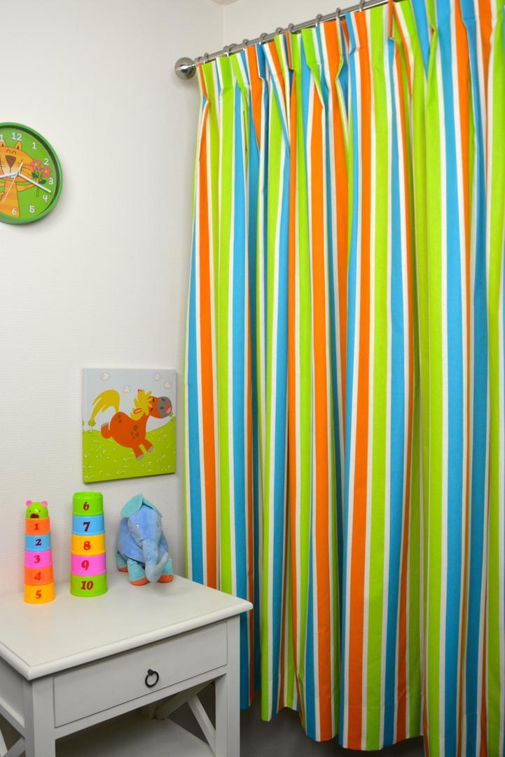 Kleurrijk gordijn met een eenvoudig streepmotief in de lengterichting. Dit tijdloze kindergordijn is beschikbaar in zeven verschillende uitvoeringen en past in vrijwel iedere kinderkamer.