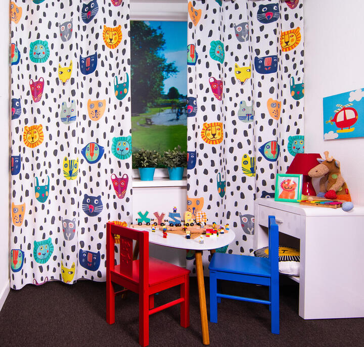 Dat geldt zeker ook voor deze gordijnstof met de naam Face Drops, een unieke gordijnstof met een jungle en safari dessin.