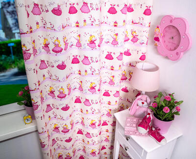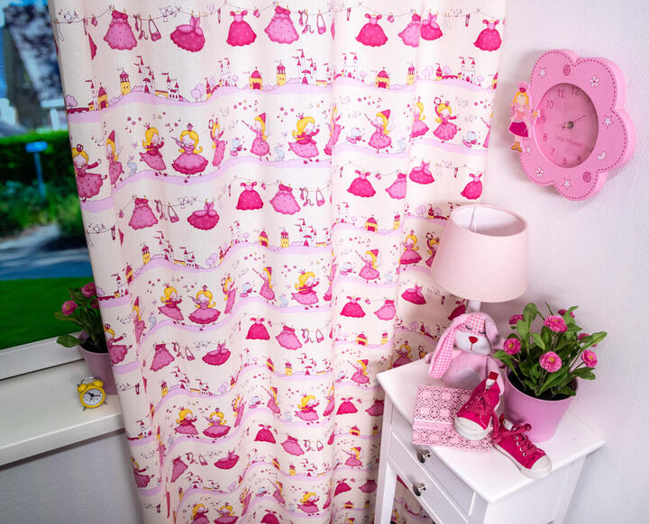 Dat geldt zeker ook voor deze gordijnstof met de naam Fairytale, een unieke gordijnstof met een prinsessen dessin.