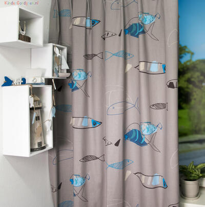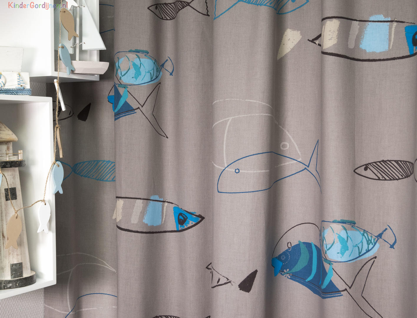 Fish is een gordijn met een kunstzinnig accent! De vorm van de vissen is teruggebracht tot zijn pure basis, waardoor eenvoud juist extra krachtig wordt. Deze stof is zo een grafisch kunstwerkje geworden. Hier gedrukt op 3 verschillende ondergrondkleuren: licht taupegrijs, warm middengrijs en gedekt kobaltblauw. Met gedekt wordt hier bedoeld: een heldere kleur blauw, echter het felle is eraf gehaald om het gordijn rustig te houden. De stof is mat en aan de voorzijde bedrukt met de kleuren en het tijdloze design patroon. Wanneer je graag donker slaapt, adviseren wij om het gordijn te voeren. Dit kan bij het bestellen worden aangevinkt. Tevens verlengt dit het kleurbehoud van de stof, waardoor je extra lang van jouw stilistische onderwaterwereld kan genieten!