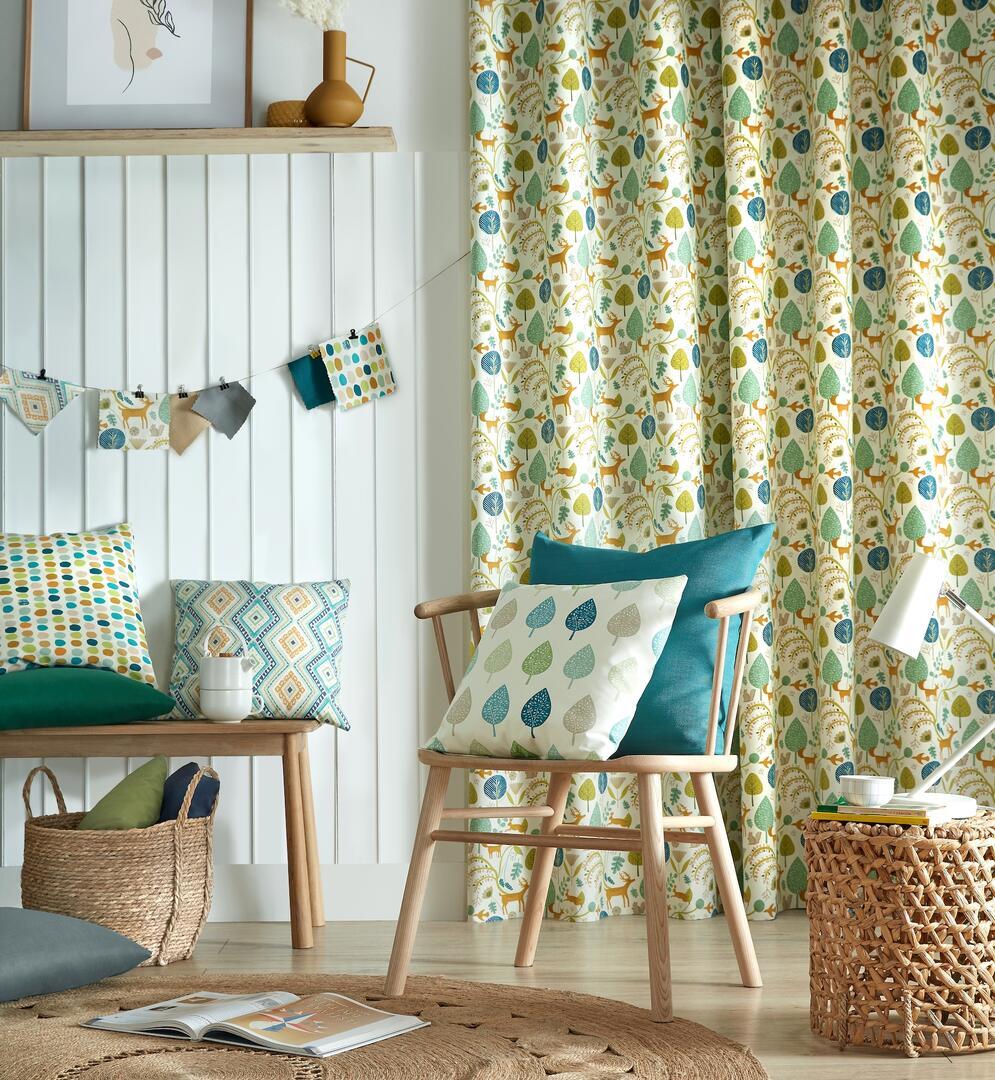 Dat geldt zeker ook voor deze gordijnstof met de naam Scandi Woodland, een unieke gordijnstof met een bosdieren dessin.