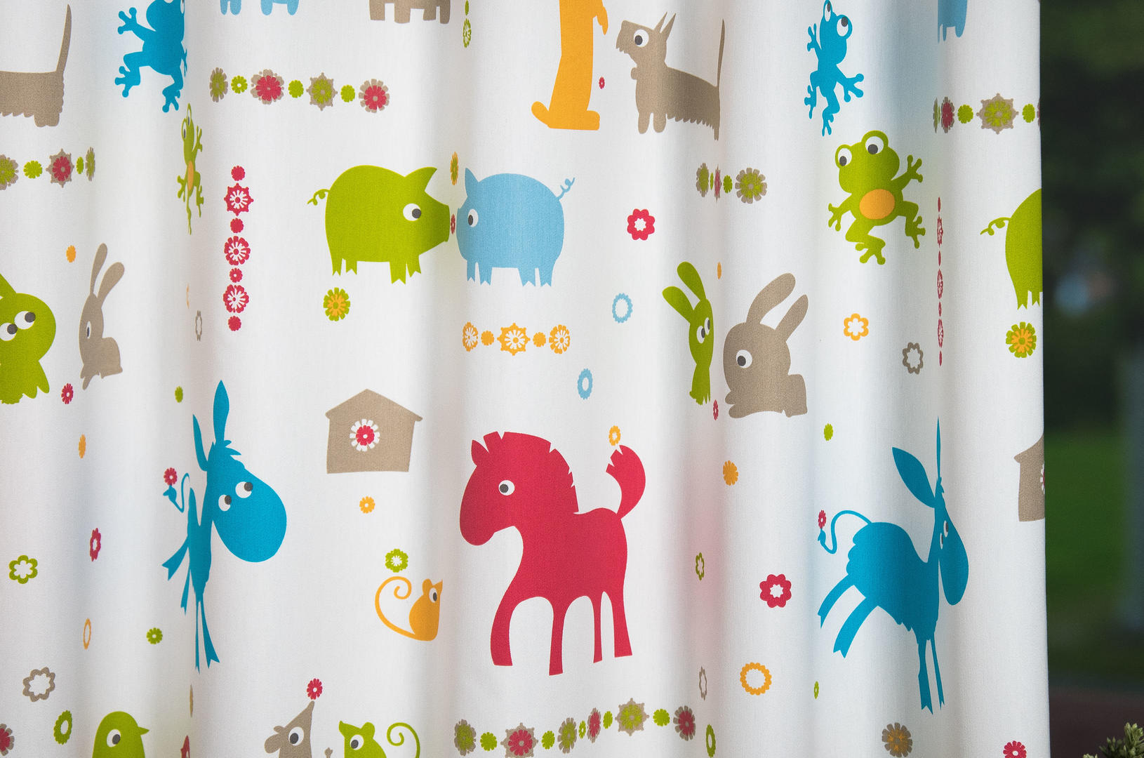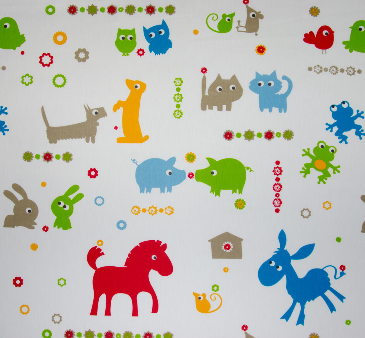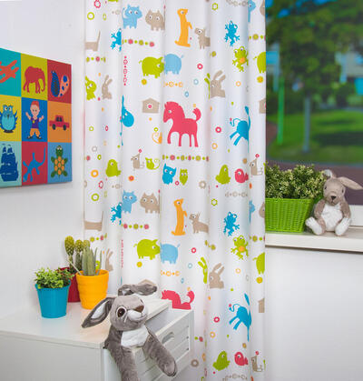 Kinderkamergordijnen mogen best iets schattigs & kleurrijks hebben. Wil je graag een gordijn met diertjes om naar te kijken, alleen zeker niet te zoetsappig, dan is dit jouw keuze! De beestjes zijn vereenvoudigd weergeven, waardoor het geheel fris en eigentijds wordt. Uitstekend te combineren met een pittige muurverfkleur en ook warmgrijs kan perfect. De stof valt soepel, is mat met een satijnzachte uitstraling. De ondergrondkleur is warm wit. De afbeeldingen zijn op de voorzijde gedrukt en de konijntjes zijn b.v. 9 cm hoog. Voor extra verduistering graag even voeren in het bestelproces aanvinken.