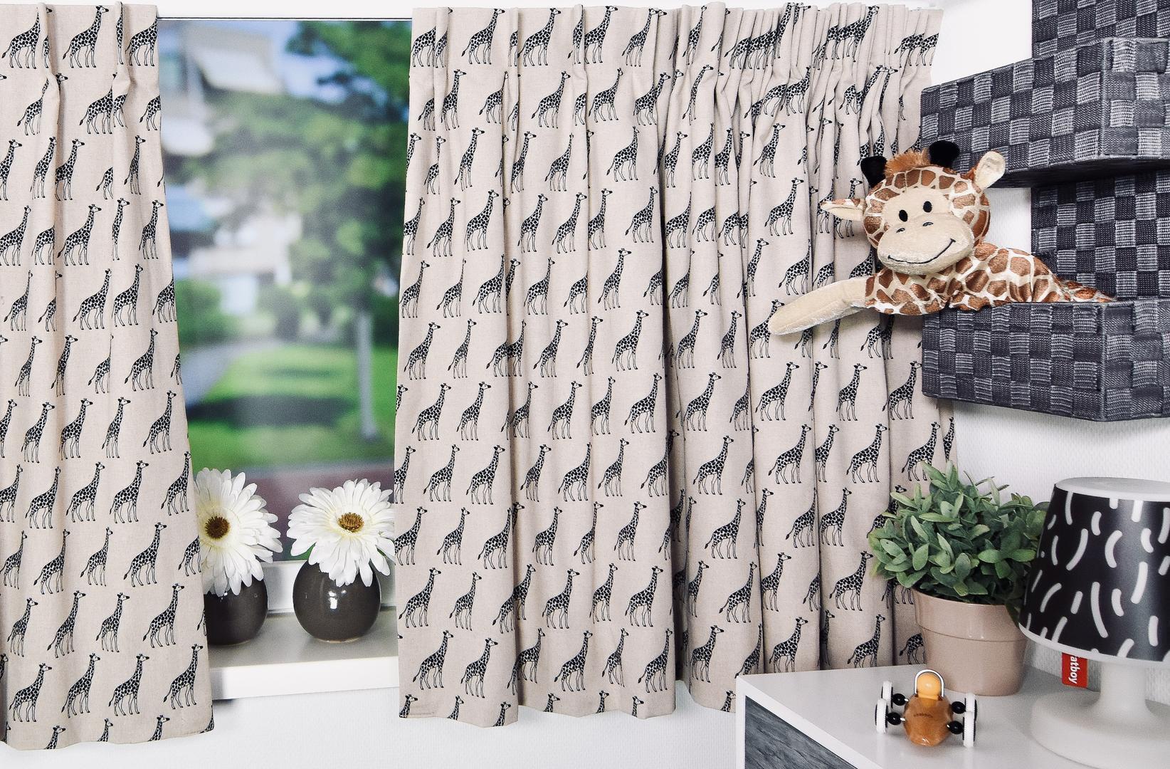 LESS is MORE, dat is van deze ontwerper de gedachte geweest. Een rank dier in een grafische vorm is écht fraai genoeg! De diepzwarte giraffes zijn gedrukt op een warme linnenlook stof. Dat geeft een stijlvol, haast chique effect. Je kan dit safari thema uitbreiden, maar het hoeft zeker niet. Zoals gezegd: minder is in deze méér! Wanneer je een donkere kamer wenst, alleen nog even laten voeren. Ga jij voor deze gave giraffes?