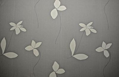 Prachtig rustgevende gordijnstof met als illustratie, pengetekende bloemen...