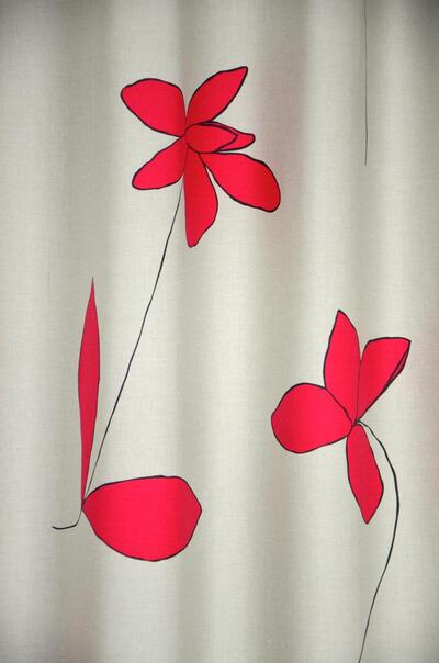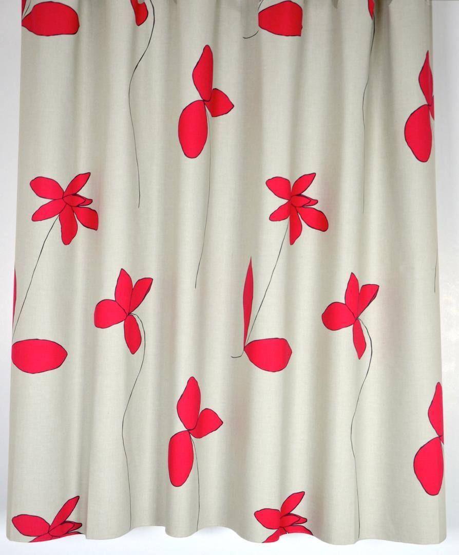 Prachtig rustgevende gordijnstof met als illustratie, pengetekende bloemen...