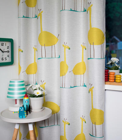 De Giraffe is een nieuwe verduisterende stof voorzien van een fraaie safari print. Het unieke is de isolerende en reflecterende achterzijde van de stof, deze zorgt er voor dat de stof warmte, koude en geluidsisolerend is.