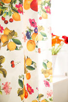 Dat geldt zeker ook voor deze gordijnstof met de naam Juice, een unieke gordijnstof met een keuken dessin.