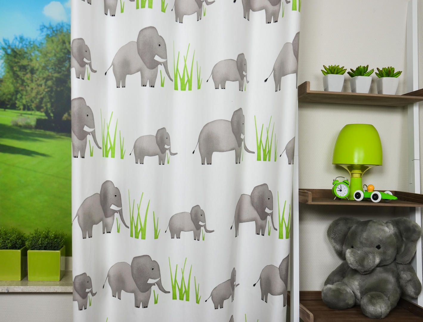 Dat geldt zeker ook voor deze gordijnstof met de naam Jumbo, een unieke gordijnstof met een jungle en safari dessin.