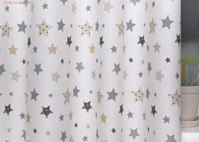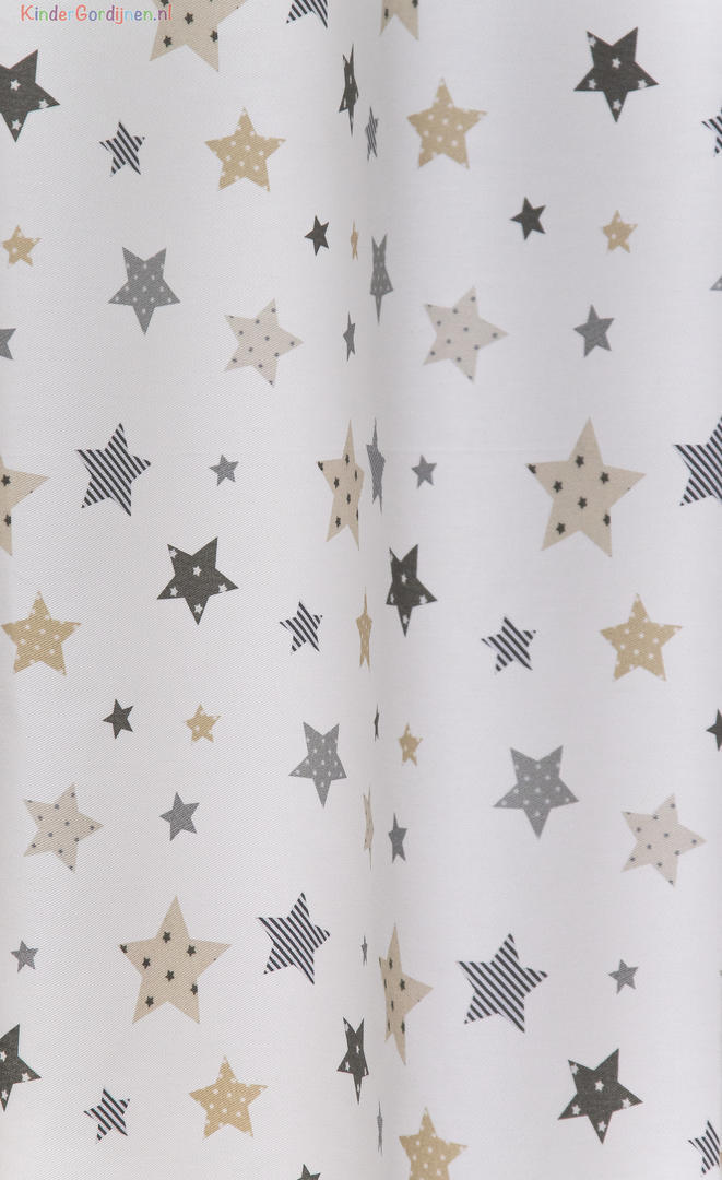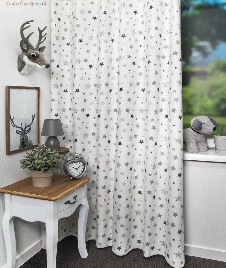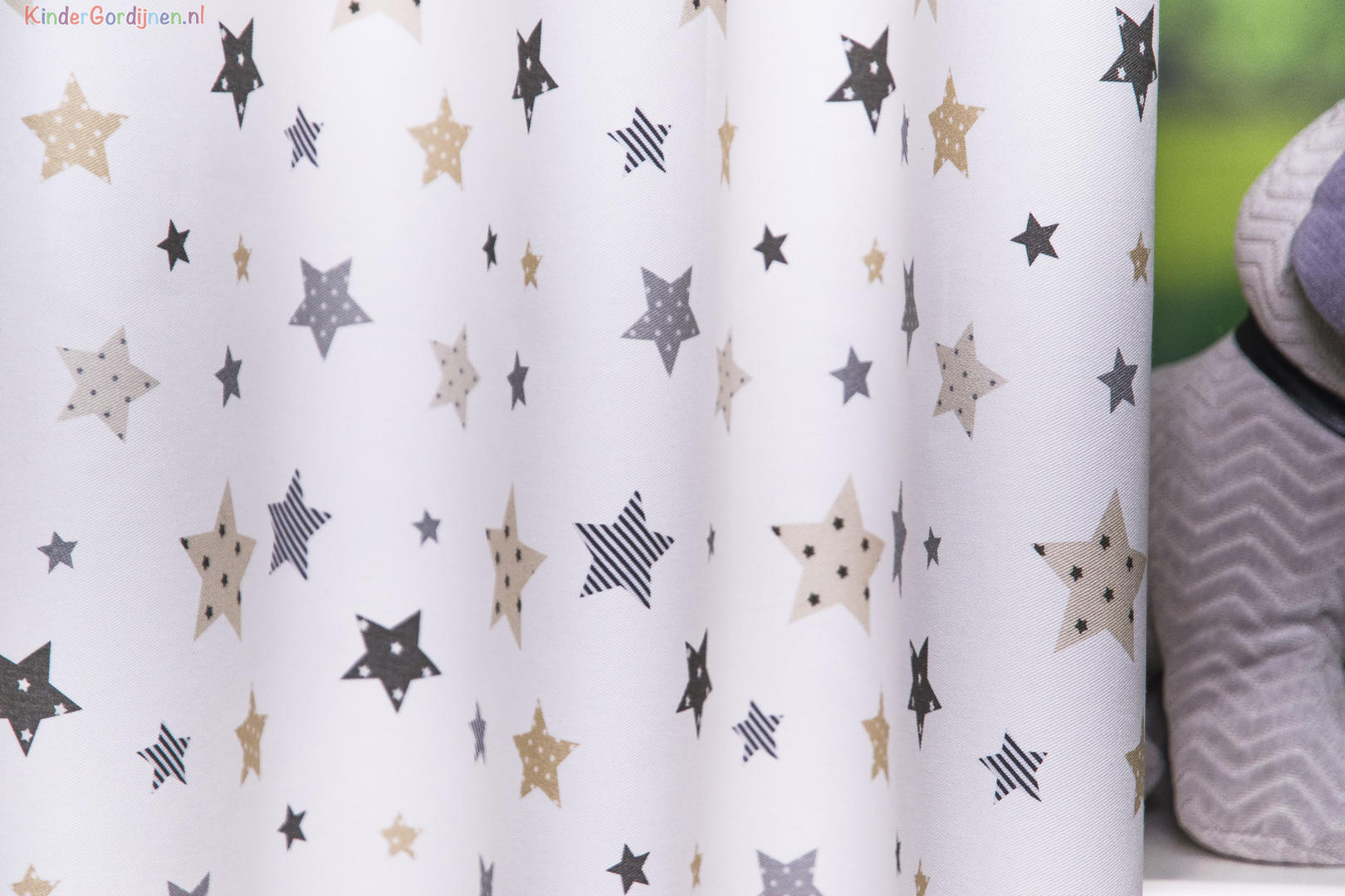 Wat een schitterende kwaliteit gordijnstof! Zien is geloven, zo mooi soepel geweven én maar liefst 280 cm breed! Dat betekent dat het babykamer gordijn meestal naadloos kan worden gemaakt. De is print is gedrukt op een heel fijn geribde stof, wat een vlotte & sportieve uitstraling geeft. Het sterretjes patroon is op de voorzijde gedrukt op de warm witte ondergrond en leverbaar in 3 verschillende kleuren. Blauw- grijs voor de jongenskamer, pastel roze - grijs voor meisjes slaapkamer en camel grijs voor als je liever geheim wilt houden welk lief kleintje er komt slapen. Combineren kan met een verduisterend rolgordijn uit onze collectie. Of optie voeren aanvinken in het bestelproces wanneer je extra verduistering wenst. Kortom, deze fraaie stofserie is een aanwinst binnen onze enorme collectie!