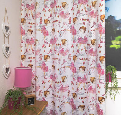 Ballet gordijnen, voor de dansende ballerina! Ballet is een dansstijl die in de 15e eeuw in Italië is ontstaan en door Zonnekoning Lodewijk de XIV uit Frankrijk werd groot gemaakt. Hij hield zo van dansen dat hij de eerste balletschool heeft geopend. Zo’n balletacademie bestaat nog steeds. Als je gelukkig wordt van ‘spitzen’, dan wordt je ook gelukkig van dit gordijn. De danseresjes zijn 25 cm groot en gedrukt op satijn, heel fijn geweven stof. Een héérlijk zacht gordijn voor meiden die dromen van dans & audities!