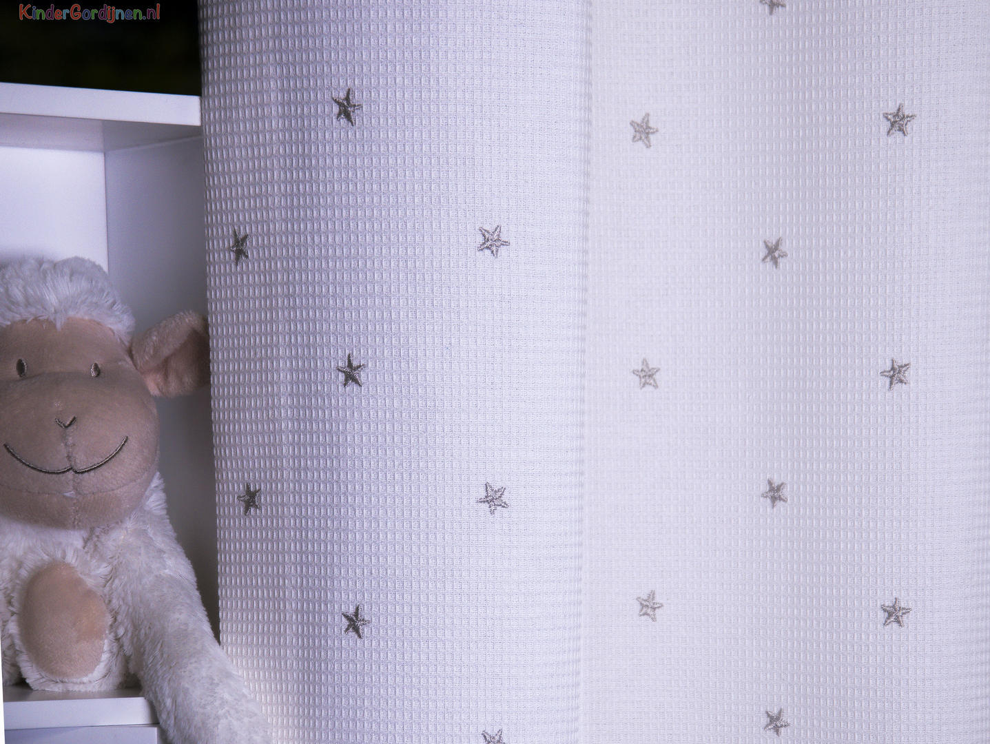 SCHATTIG! Een gordijn voor de babykamer dat rustig is en toch extra decoratief. Dat komt door de wafelpiqué structuur. Dit is een heel fijn ingeweven ribje, wat de stof optisch meer warmte geeft. In combinatie met een harde vloer (laminaat/ Novilon) geeft het daardoor een extra aantrekkelijke ‘boost’. De voor- en achterzijde hebben dezelfde kleur. Het geweven sterretje is 1 cm groot. Dit fraaie babykamer gordijn combineert vast & zeker uitstekend met jouw hemeltje/ aankleedkussen en lakentjes.