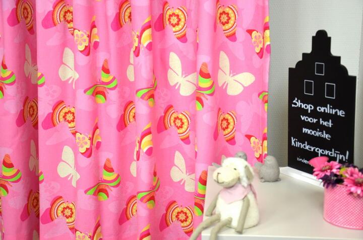 Laat de vlinders door de kinderkamer fladderen met dit kleurrijke kindergordijn. Hiermee staan uw (klein)kinderen elke dag vrolijk op. Prachtig rustiek gordijn van een stevige katoenen gordijnstof.