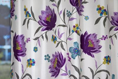 De Mills gordijnen bevatten een uitgesproken bloemenprint op structuur gordijnstof. De onregelmatige garens geven de look van wilde zijde. De bloemprint is aan de achterzijde van de stof licht zichtbaar.
