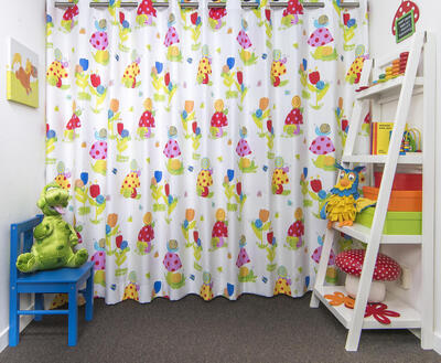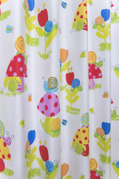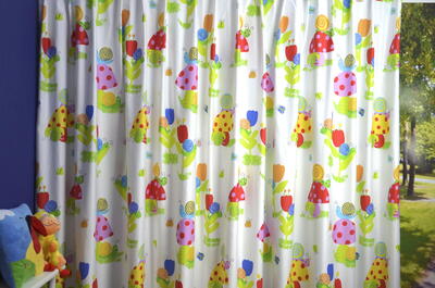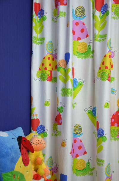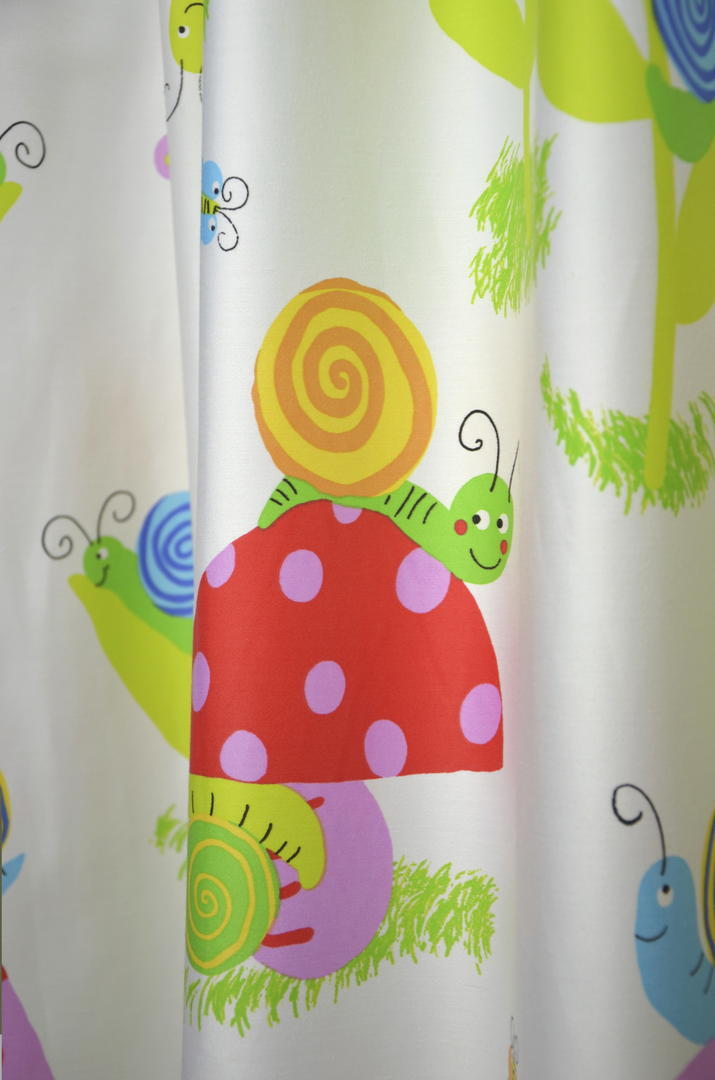 De kinderkamer verandert in een spannend sprookjesbos met deze prachtigelgekleurde slakken en paddenstoelen De kindergordijnen zijn geschikt voor de jongenskamer en de meisjeskamer. De lichte gordijnstof kunnen wij voor u voeren en verwerken tot een volledig gordijn.