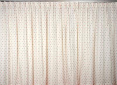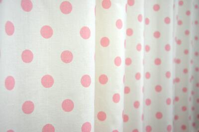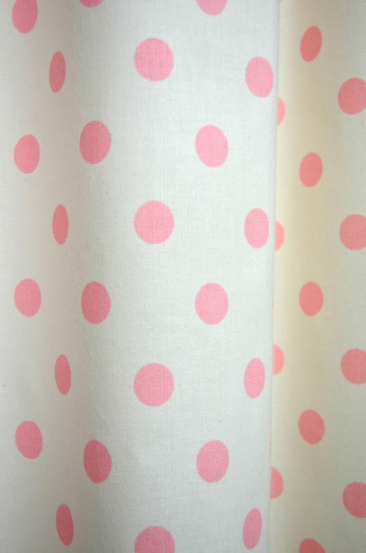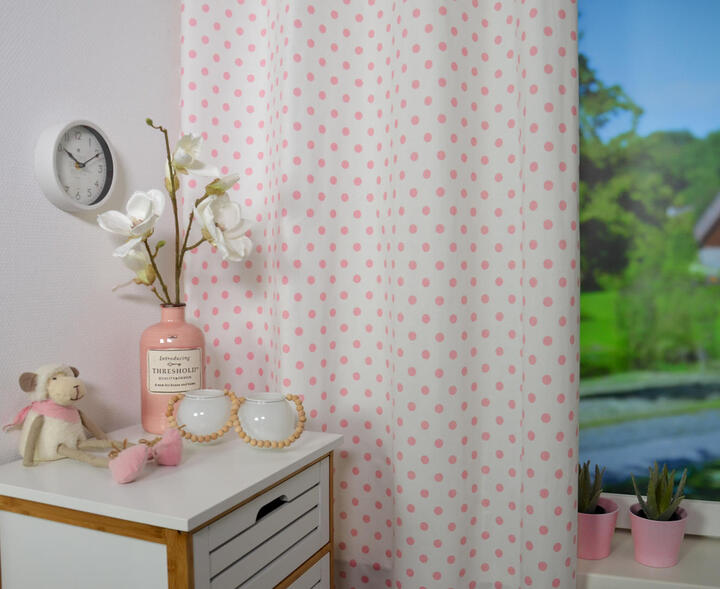 Tijdloos kindergordijn met een effen achtergrond en stippen (16mm) op de voorgrond. Verkrijgbaar in een zachtroze kleur. Past in vrijwel elke meisjeskamer!