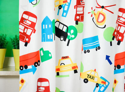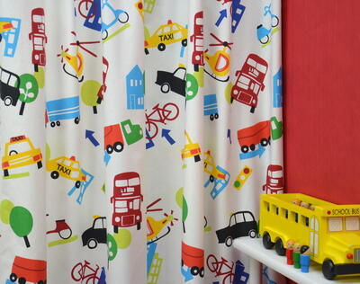 Fietsen, taxi’s, dubbeldekkers en helicopters verzamelen zich op één gordijn. Waar droomt uw kind het liefste over? Met dit stoere gordijn wordt naar bed gaan een avontuur.